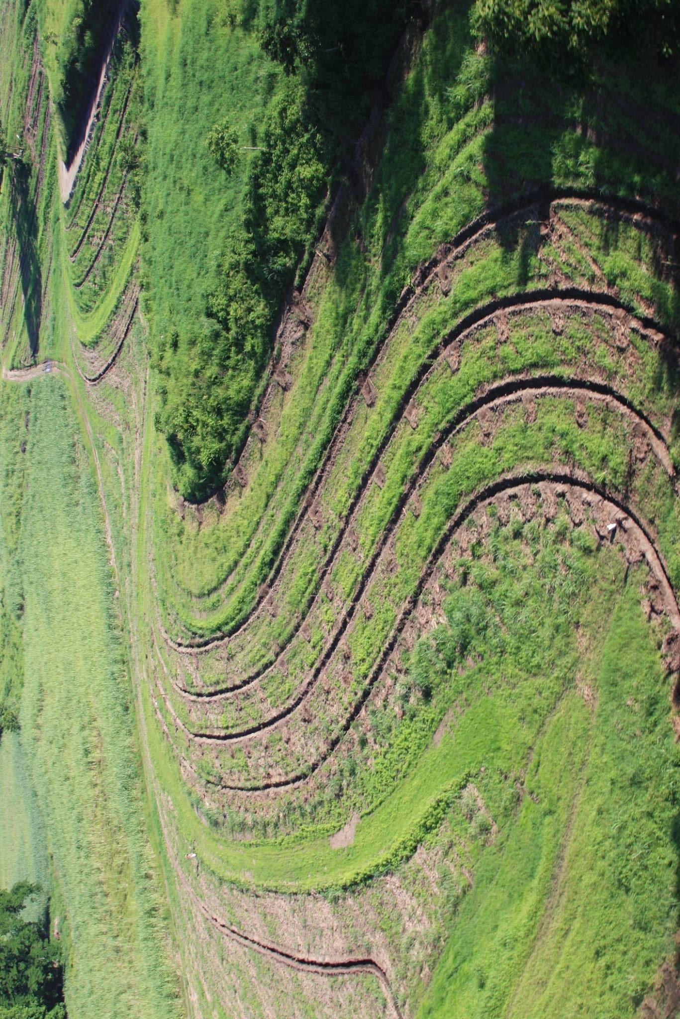 Utilizamos curvas de nivel para crear paisajes que permiten la retención eficiente del agua en el suelo.